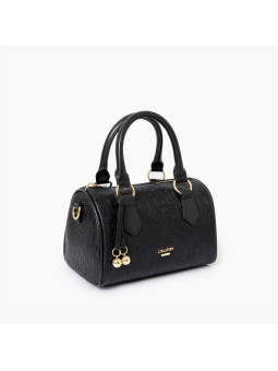 - Petit sac bowling en simili cuir effet grainé avec monograme